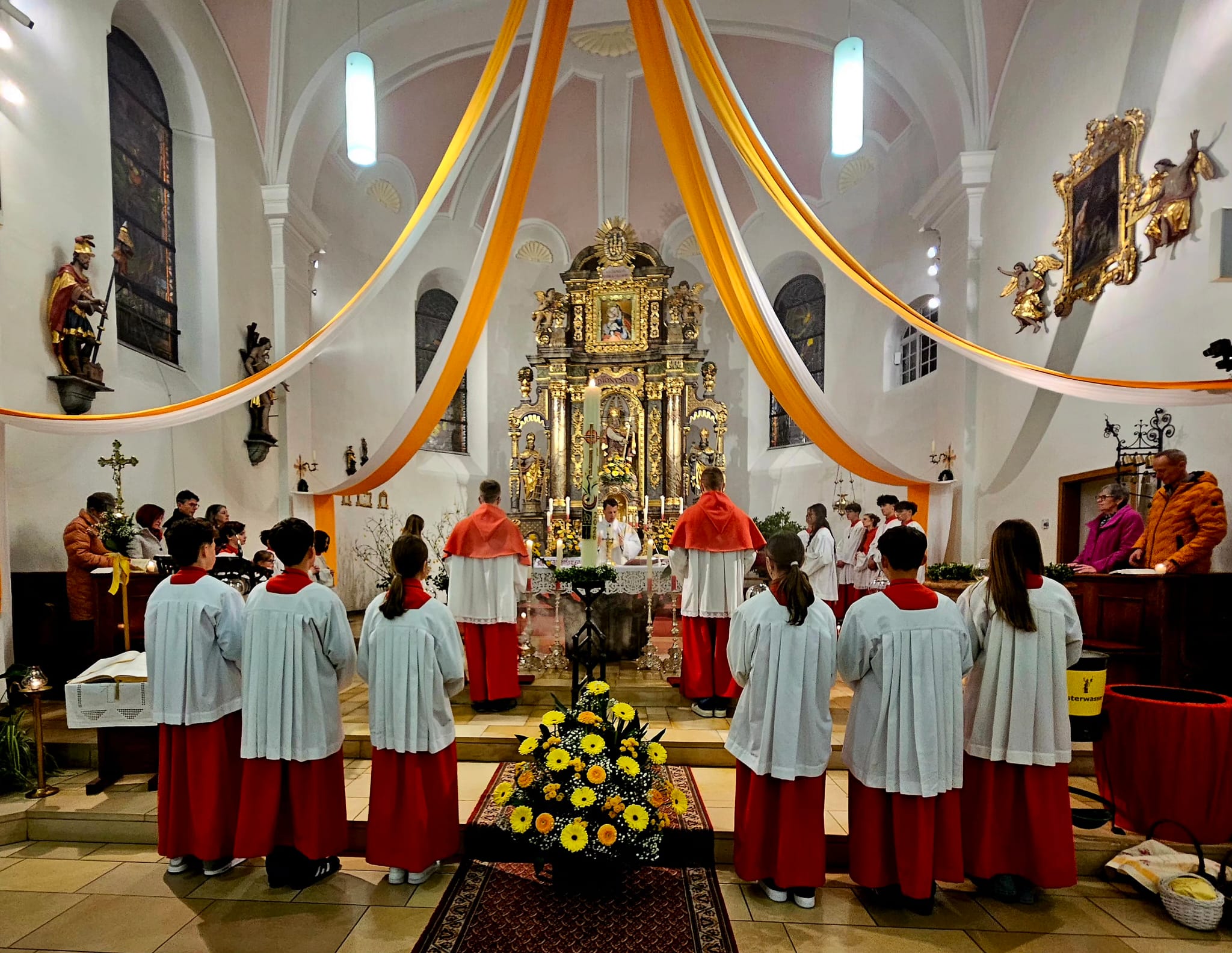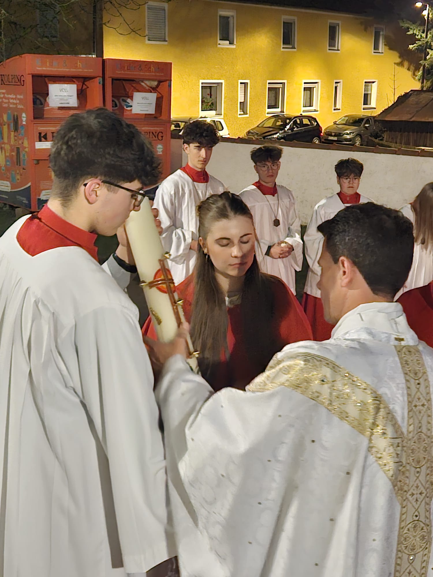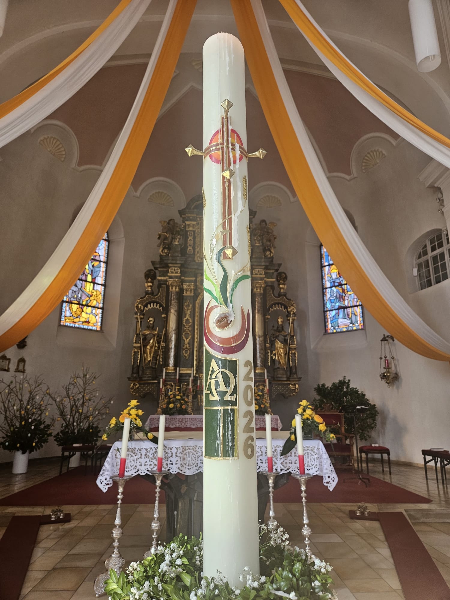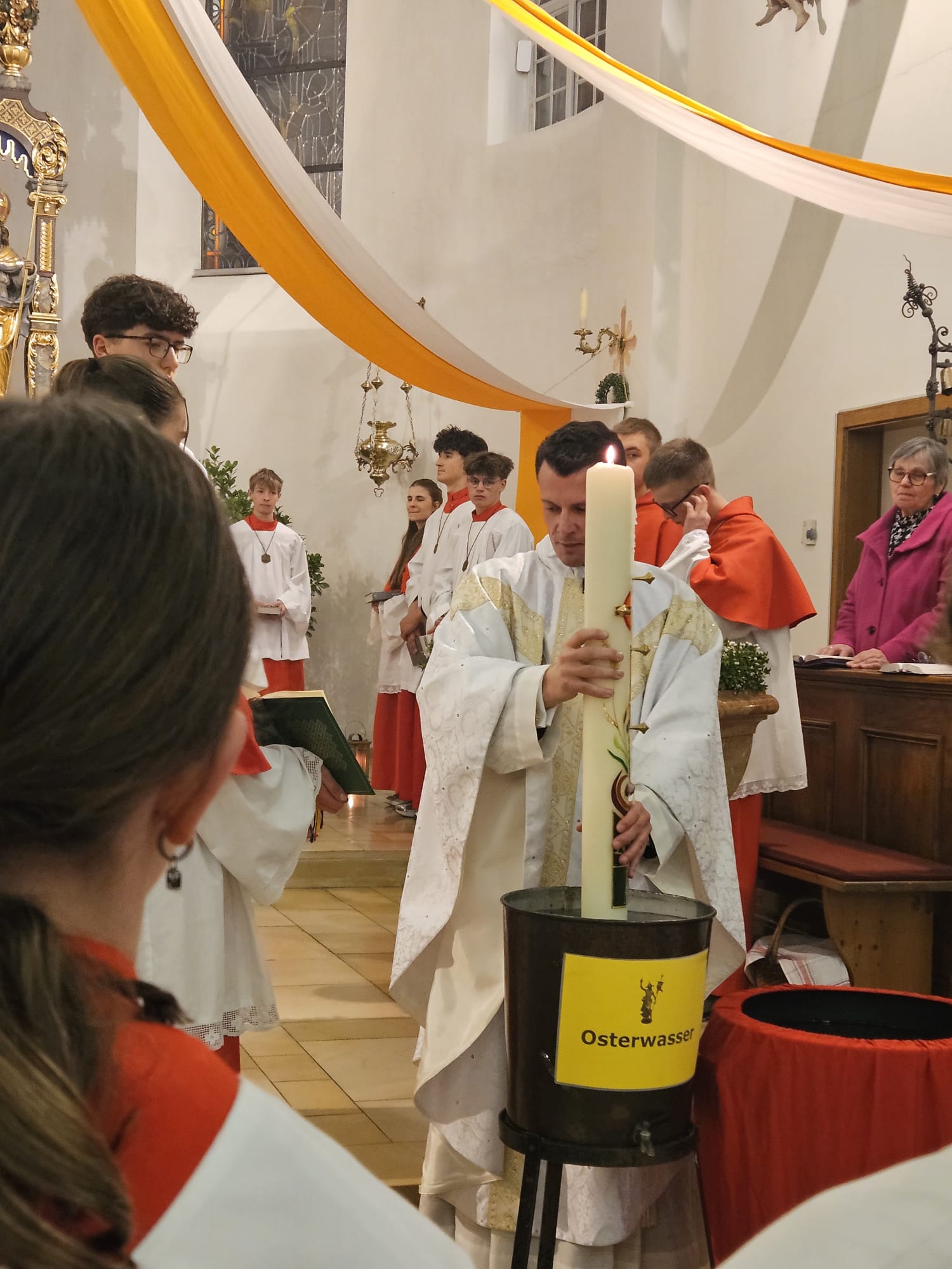 Draußen loderte das Osterfeuer – drinnen warteten die Gläubigen in der dunklen, voll besetzten Pfarrkirche St. Dionysius auf den Beginn der Hl. Osternacht. Pfarrer Thomas Kohlhepp zog gemeinsam mit über 20 Ministranten vor die Kirche, um das Feuer und die neue Osterkerze zu segnen, die in diesem Jahr von Roland Hoffmann gestaltet worden war. Der Einzug mit der brennenden Osterkerze und dem Ruf „Lumen Christi“ ist in jeder Osternacht ein besonders eindrucksvoller Moment. Es folgte das Exsultet, das Pfarrer Thomas Kohlhepp feierlich sang. Die anschließenden Lesungen spannten den großen Bogen der Heilsgeschichte – von der Schöpfung bis zur Auferstehung. Nach [...]