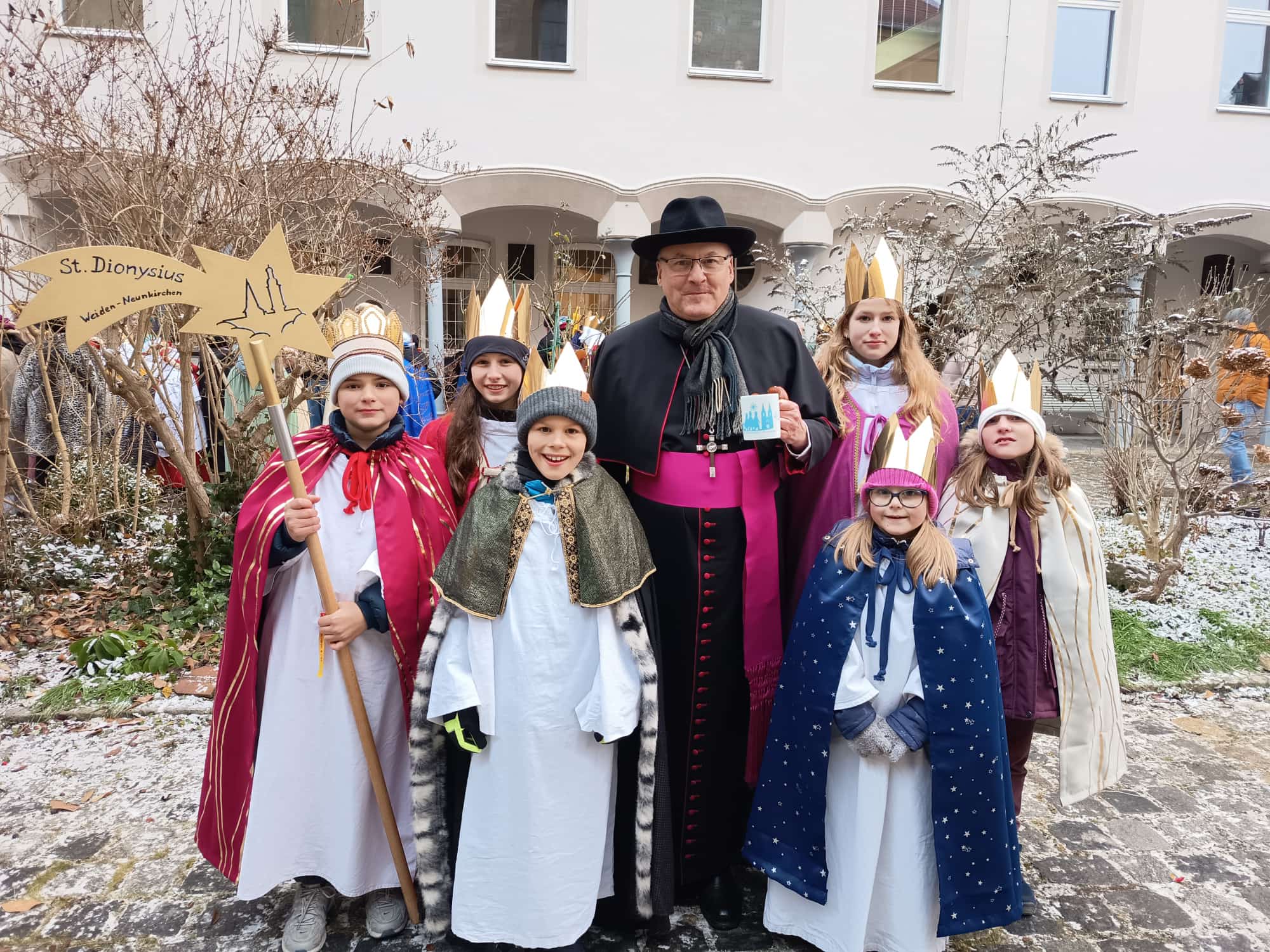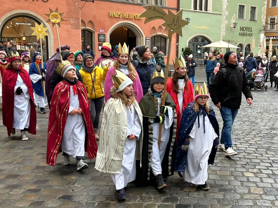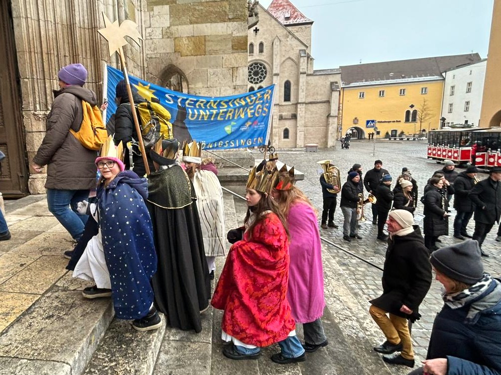 Zur diözesanen Sternsingeraussendung am 29.12.2025 machten sich 11 Personen aus unserer Pfarrgemeinde auf den Weg nach Regensburg, um von Bischof Rudolf gesegnet und ausgesendet zu werden. In Begleitung unseres Herrn Pfarrers Thomas Kohlhepp zogen wir mit ca. 1200 weiteren Sternsingern aus unserer Diözese in den Dom ein. Der Bischof erinnerte sich an seinen eigenen Dienst als Sternsinger und bedankte sich bei den Kindern, dass sie dafür sogar einige Ferientage opfern, um Spenden für Kinder in Not zu sammeln. Zum Ende der Andacht segnete er die Sternsinger und nach einer Tasse heißem Tee gab es für jede Gruppe noch ein Foto [...]