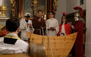 Der alljährliche ökumenische Wortgottesdienst in der Gebetswoche um die Einheit der Christen wurde auch dieses Jahr wieder von Jugendlichen beider Konfessionen in der evangelischen Pfarrkirche gestaltet. Pfarrer Ruhs und Pfarrer Kohlhepp begrüßten dazu die gekommenen Gottesdienstbesucher und bedankten sich bei den Jugendlichen für ihr wiederholtes Engagement. In einem Anspiel nach dem Evangelium (Mk 16, 14-20) trugen die Jugendlichen die Gefangennahme und Überfahrt von Paulus und seinen Weggefährten nach Rom vor. [...]