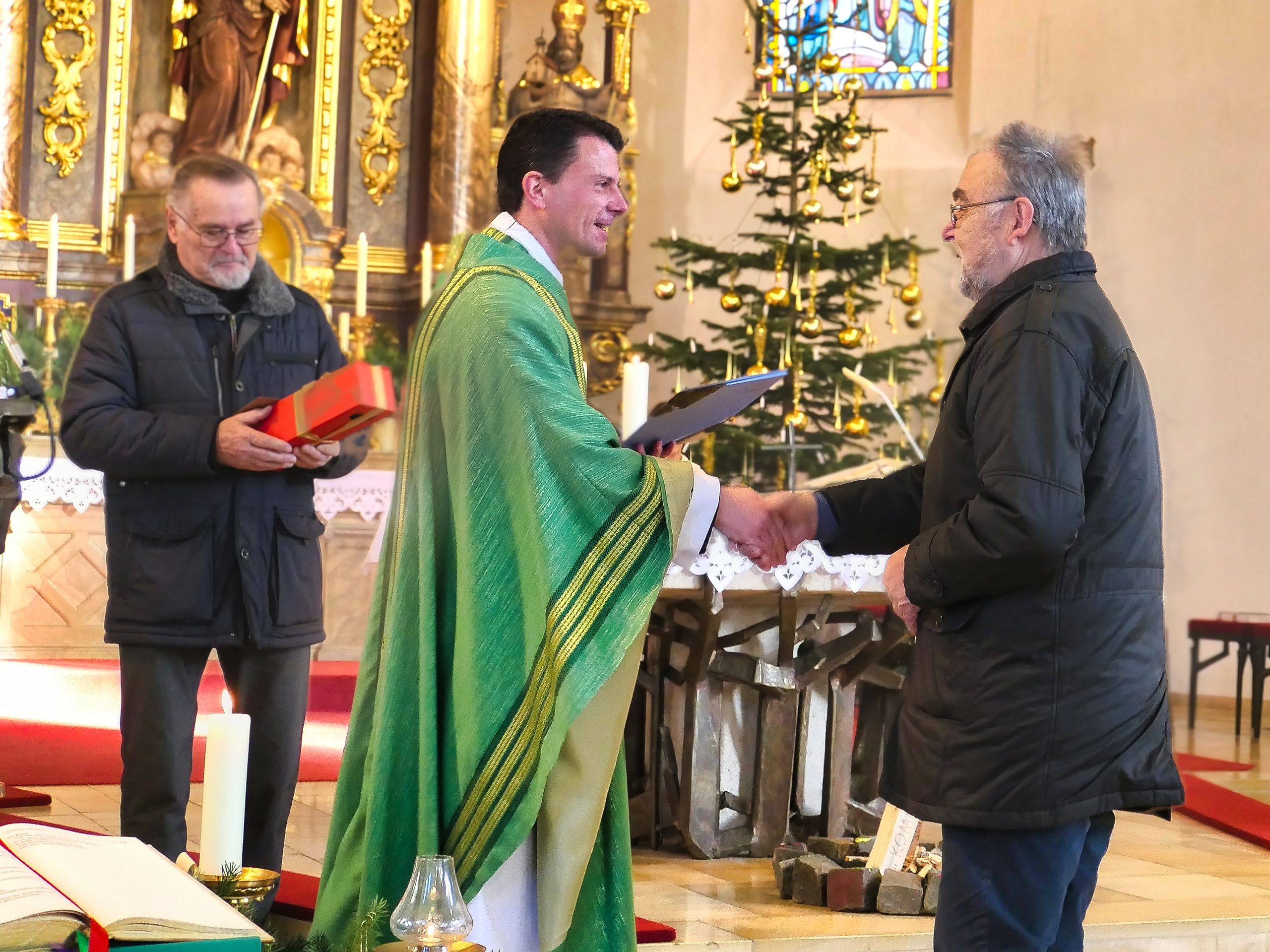 Pfarrer Thomas Kohlhepp würdigt und verabschiedet Johann Heinrich für 24 Jahre treuen Dienst in der Kirchenverwaltung
