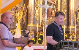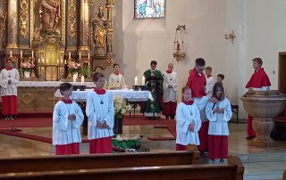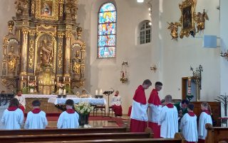 Im Rahmen der feierlichen Vorabendmesse am Samstag 20.07.24 fand in der Pfarrei St. Dionysius in Neunkirchen die Ministranten-Neuaufnahme und Verabschiedung statt. Mit unterschiedlichen Schuhen für verschiedene Anlässe und Aufgaben stimmten aktive Ministranten in das „unterwegs sein“ als Ministrant ein. Herr Pfarrer Thomas Kohlhepp freute sich sehr, dass Ella Schmid, Romy und Ludwig Erben, Fabio Weiß, Theo Wolf und Xaver Hammerl sich zum Dienst am Altar bereit erklären. Nach dem gemeinsamen [...]