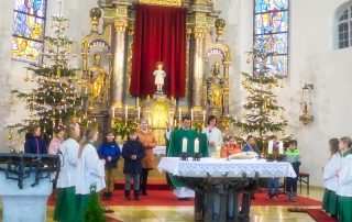 Am Vorabend des Festes „Darstellung des Herrn“ – volkstümlich bekannt als Maria Lichtmess – segnete Pfarrer Kohlhepp die mitgebrachten Kerzen der Gemeindemitglieder, den zukünftigen Kerzenschmuck der Kirche und insbesondere die individuell gestalteten Kommunionkerzen der diesjährigen Kommunionkinder. Diese zogen im Anschluss mit leuchtenden Kerzen in den Händen, angeführt durch die Ministranten als Lichterprozession durch die schwach beleuchte Kirche. Nach dem Schlusssegen spendete Pfarrer Kohlhepp jeden Kirchenbesucher einzeln den traditionellen Blasiussegen zum [...]