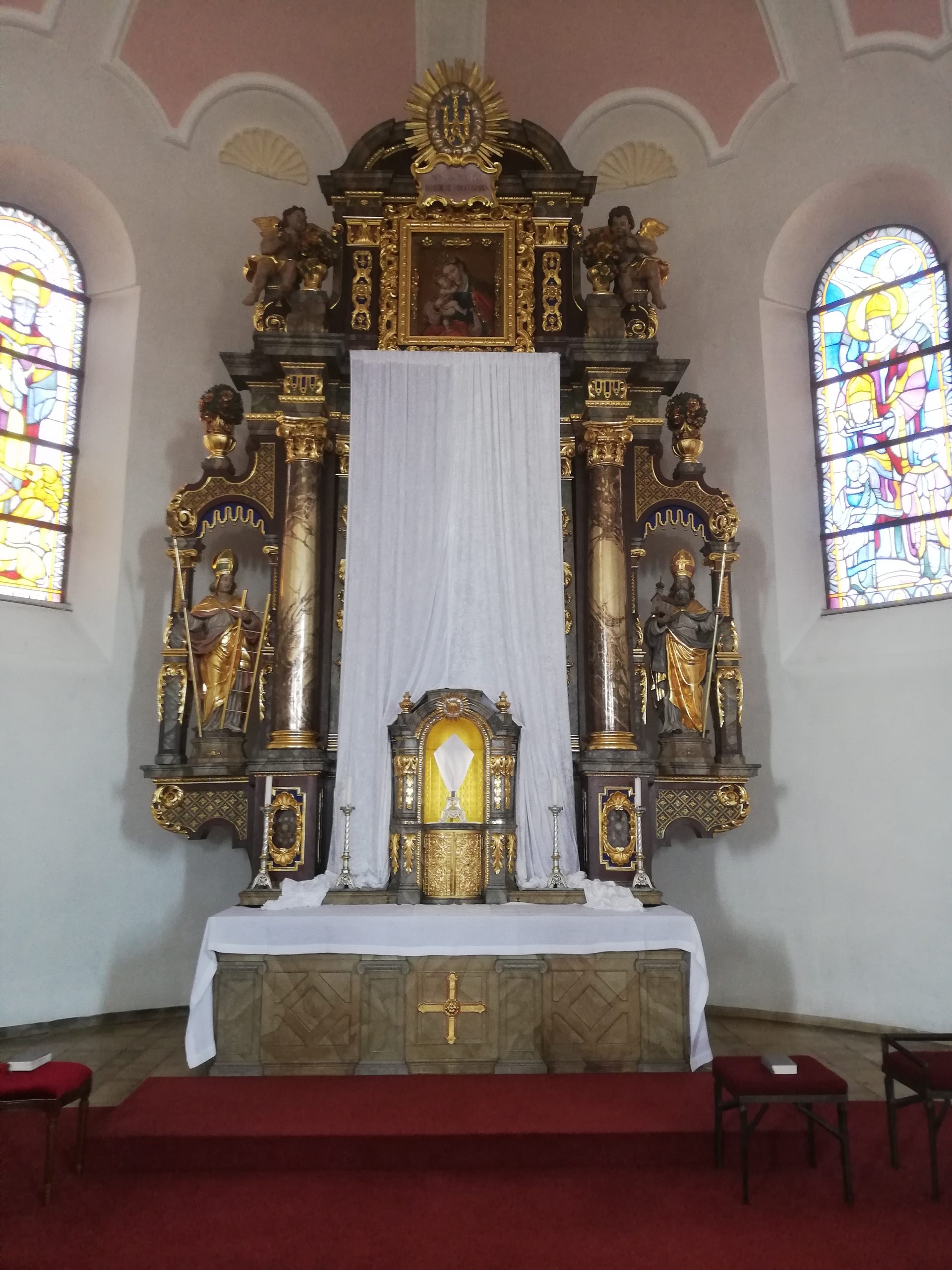 Nach dem Schlussgebet wurde mit Gemeindegesang das Allerheiligste und die Hostien in einer Prozession durch die Kirche zum Seitenaltar übertragen. Die Altäre wurden abgedeckt und entblößt. In der anschließenden Ölbergstunde wurde die an die Todesangst Jesu und sein Gebet im Garten Getsemani vor seiner Verhaftung erinnert und zusammen gebetet. (Text und Bild: Beate Suttner)