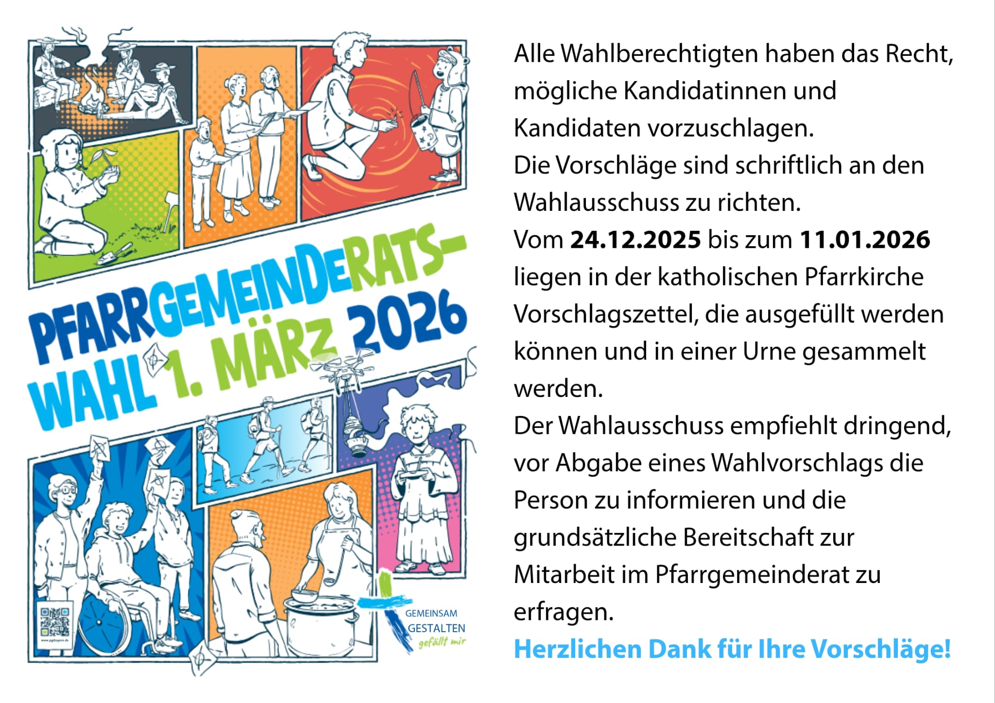 Vorschläge für die Pfarrgemeinderatswahl am 1. März 2026